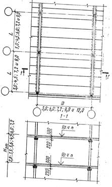 Колонны приняты сечением 300X300 и 400X400 мм. Ригели таврового сечения имеют высоту 450 и 600 мм с опиранием плит перекрытия на нижнюю полку тавра. Ригели опираются на консоли колонн скрытого типа. При смонтированном перекрытии такие консоли не выступают внутрь помещения, являясь как бы продолжением нижней части ригеля. Плиты перекрытия бывают многопустотные (L = 3; 6; 7,2 и 9 м), ребристые (L = 3; 6 и 9 м), Т-образные и типа «двойное Т» (L = 9 и 12 м). Монтаж перекрытия начинают с установки связевых плит, расположенных по осям колонн. Для создания жестких дисков перекрытия плиты крепят к ригелям сваркой закладных деталей, швы между плитами замоноличивают.