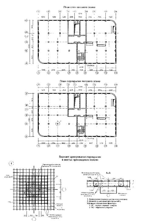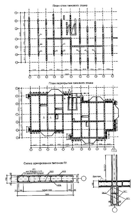 Рис.3. Планы перекрытий монолитного здания стеновой конструктивной системы.