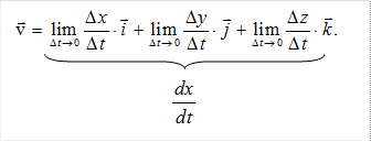 В математике данный предел называется производной, следовательно, скорость можно определить как производную радиус-вектора движущейся точки по времени: