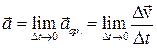 В общем случае величина среднего ускорения может быть различной на различных участках траектории и зависеть от величины промежутка времени Dt, по которому проводится усреднение. В пределе при Dt ® 0 точка В будет стремиться к точке А и среднее ускорение по пути АВ превратится в мгновенное или истинное ускорение