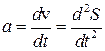 . Т.е. величина ускорения определяется первой производной скорости v по времени или второй производной пути по времени.