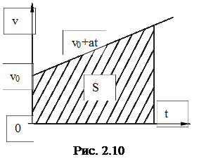 Зная зависимость v от t можно подсчитать путь, пройденный телом при равнопеременном движении (рис. 2.10).