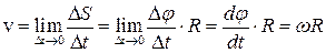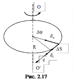 Пусть за малый промежуток времени Dt тело повернулось на угол Dj (рис. 2.17). Точка, находящаяся на расстоянии R от оси, проходит при этом путь DS = R×Dj. По определению линейная скорость точки будет равна