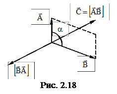равен произведению модулей перемножаемых векторов на синус угла a между ними (рис. 2.18).