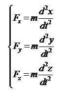 II закон Ньютона можно записать в скалярной форме, взяв проекции силы на координатные оси X, Y и Z.