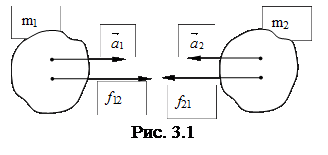 Два тела с массами m1 и m2, изолированные от действия внешних сил притягиваются (или отталкиваются) друг от друга вследствие того, что, например, несут электрические заряды. Под действием сил