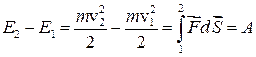 Работа результирующей всех сил, действующих на частицу, идет на приращение кинетической энергии частицы: А12 = Т2 - Т1.