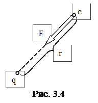 2. Заряженная частице «е» (материальная точка) находится в электрическом поле, возбуждаемом неподвижным точечным зарядом q (рис. 3.4). Это поле характерно тем, что направление силы, действующей на частицу в любой точке пространства, проходит через неподвижный центр (заряд q), а величина силы зависит только от расстояния до этого центра F = F(r).