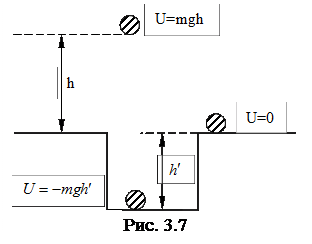 (рис. 3.7) Отметим, что кинетическая энергия не может быть отрицательной. В рассматриваемом примере мы относили потенциальную энергию U = mgh к телу, находящемуся в поле сил тяжести. Однако, строго говоря, потенциальную энергию следует относить к системе взаимодействующих друг с другом тел. Так, в данном случае U = mgh есть энергия системы Земля - тело. Потенциальная энергия системы тел зависит от их расположения по отношению друг к другу.