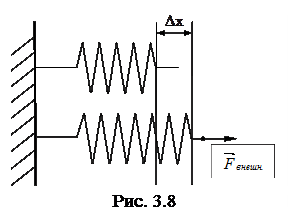 Определим работу, которую необходимо затратить для растяжения (или сжатия) пружины на величину «x» (рис.3.8). Будем считать, что пружина подчиняется закону Гука, т.е. упругая сила пропорциональна деформации. Будем проводить растяжение пружины очень медленно, чтобы силу