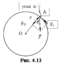 Скалярное выражение для момента силы можно получить более просто. Нормальная составляющая силы не влияет на величину скорости и уравновешивается силой реакции связи рис. 4.13. Тангенциальная составляющая силы Ft изменяет v, тогда по II закону Ньютона