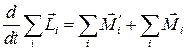 Рассмотрим систему из N материальных точек. Разобьем силы на внутренние и внешние. Результирующий момент внутренних сил, действующих на i -ую материальную точку, обозначим