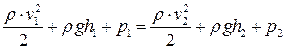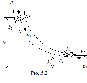 где v 1 и v 2 - скорости частичек жидкости в сечениях S1 и S2 соответственно; g - ускорение земного притяжения; h1 и h2 - высоты центра сечений.