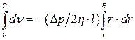 , в котором учтено, что на стенках трубы при r = R скорость движения слоя v = 0. После интегрирования получим