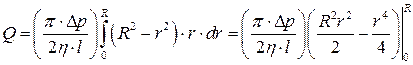Чтобы получить поток Q, нужно просуммировать все dQ при изменении r от 0 до R. Получим определенный интеграл, который с учетом выражения (5.10), будет иметь вид