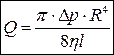 Это выражение называется формулой Пуазейля. Из формулы практический вывод, что для улучшения пропускной способности труб в первую очередь следует увеличить их радиус. Например, при увеличении радиуса трубы в 2 раза количество протекающей жидкости возрастет в 16 раз.