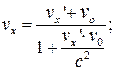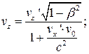 движется относительно системы K со скоростью v o вдоль оси x. Пусть vx = dx/dt есть компонента скорости некоторой частицы в системе K, а