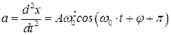 Вернемся к формулам для смещения x, скорости v и ускорения a гармонического колебательного процесса.
