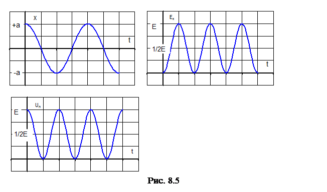 Определим, как со временем изменяется Ек и Uп для гармонического колебания