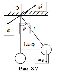 Отклонение маятника от положения равновесия будет характеризоваться углом j (рис. 8.7). При отклонении маятника от положения равновесия возникает вращательный момент