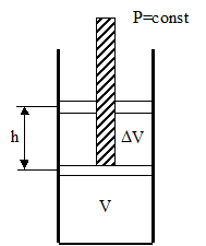 Пусть в цилиндре под поршнем находится 1 моль газа объема V. Газ под поршнем оказывает давление равное внешнему постоянному давлению, т.е. p = const. Пусть газ в цилиндре нагревается на 1°К. Расширяясь, он поднимает поршень на высоту “ h ”, совершив при том работу