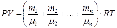 Для того, чтобы упростить это выражение для смеси газов вводят понятие эффективного молекулярного веса смеси газов.