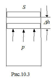 Пусть газ заключен в цилиндрический сосуд, закрытый плотно пригнанным и легко скользящим поршнем (рис.10.3). При расширении газ будет совершать работу DA = FDh, где F - сила, с которой газ действует на площадь поршня S; Dh - перемещение поршня при расширении газа. Приращение объема газа DV = SDh. Подставляя силу F = pS и DV в выражение для работы, получим DA = pDV. При расширении газа работа будет положительной, при сжатии - отрицательной. Если давление газа при совершении работы изменяется, то находят работу при каждом элементарном изменении объема