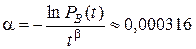 Пусть вероятность безотказной работы КС за t =1000 ч. равна Р=0,99, составим прогноз вероятности безотказной работы этой же КС через 105 ч. работы без обслуживания.