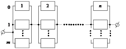 Пусть ИС состоит из n – элементов. Все элементы системы имеют свое функциональное назначение, следовательно здесь отказ любого элемента влечет за собой отказ системы. Схема расчета надежности будет представлять собой основное соединение.
