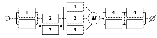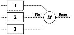 Частным случаем резервирования с дробной кратностью является мажоритарное резервирование, часто используемое в устройствах дискретного действия (рис. 7). При мажоритарном резервировании вместо одного элемента (канала) включается три идентичных элемента, выходы, которых подаются на мажоритарный орган М (элемент голосования). Если все элементы этой резервной группы исправны, то на вход М поступают три одинаковых сигнала и такой же сигнал поступает во внешнюю цепь с выхода М.