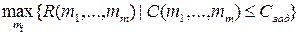 2. Обратная задача. Раздельным резервированием системы, состоящей из m -резервных групп, добиться того, чтобы при максимально возможном показателе надежности системы R стоимость всего резерва не превысила заданного значения Сзад, т.е.:
