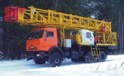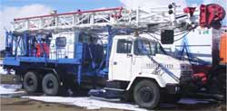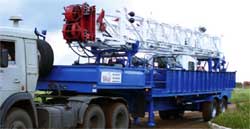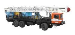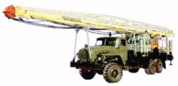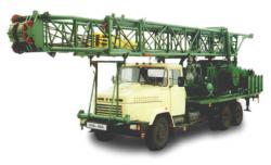 | Агрегат предназначен для производства спуско-подъемных операций при ремонте скважин, не оборудованных вышечными сооружениями для производства тартальных работ, для очистки песчаных пробок желонкой и для возбуждения скважин поршневанием (свабированием),. разведывательного бурения скважин (условная глубина бурения скважин – 1000 м (при бурении колонной 14 кг/м) при использовании дополнительного оборудования (ротора РМ 250, или силового вертлюга) |