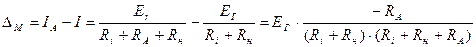 Поскольку методическая погрешность измерения силы тока является систематической, то при известных сопротивлениях цепи и прибора, она может быть исключена. Скорректированное значение тока определяется по формуле: