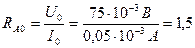 В измерительном приборе 43101, используемом в лабораторной работе, минимальный предел измерения равен 0,05 мА. При полном отклонении стрелки падение напряжения на приборе равно 0,075 мВ. Следовательно,