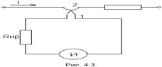 Если через преобразователь пропустить измеряемый ток I, то в следствие нагрева спая в цепи термопары 1 и прибора И будет протекать термоток постоянного напряжения.