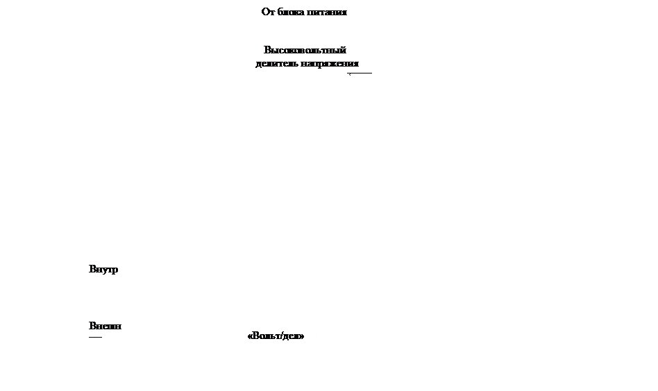 Устройства управления электронным лучом. Канал Y (см. рис.3.1) содержит усилитель вертикального отклонения (УВО), входной делитель напряжения (ВДН) и калибратор (К). Рассмотрим назначение этих устройств. Чувствительности Sx и Sy ЭЛТ малы по следующей причине. Для получения люминесценции электроны необходимо разогнать до высоких скоростей. Поэтому они быстро пролетают между отклоняющими пластинами. Чтобы отклонить их за это короткое время от оси трубки на требуемый угол, к пластинам надо приложить значительные напряжения Ux (или Uy) – десятки вольт. Обеспечить наблюдение меньших сигналов Uy(t) можно, только предварительно усилив их. Поэтому любой осциллограф включает в себя усилитель вертикального отклонения. На практике приходится наблюдать не только малые сигналы, но и достаточно большие (порядка сотен вольт). Эти сигналы надо уже не усиливать, а ослаблять, что осуществляется с помощью входного делителя напряжения.