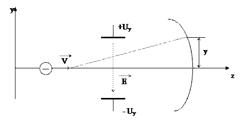 Отклоняющие пластины ЭЛТ представляют собой две пары плоскопараллельных пластин, расположенных взаимно перпендикулярно. Если, например, на пластины Y подать постоянное напряжение, то между пластинами будет образовано электрическое поле