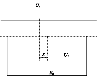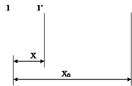 Если осциллограф одноканальный, то по-прежнему необходимо использовать внешнюю синхронизацию развертки напряжением U1. На вход Y подают сначала напряжение U1, отмечая на экране положение некоторой опорной точки периода, например, точки 1 на рис.3.6. Затем, оставляя на входе синхронизации по-прежнему напряжение U1, на вход Y подают напряжение U2, сдвинутое по фазе относительно U1. При этом ручки синхронизации обязательно должны оставаться в том же положении, при котором была отмечена опорная точка на экране. Отмечают вторую опорную точку на экране (точка 1’ на рис.3.6). Измерив по координатной сетке отрезок X между опорными точками и длину периода X0, рассчитывают фазовый сдвиг, как и ранее, по формуле