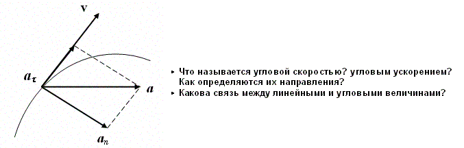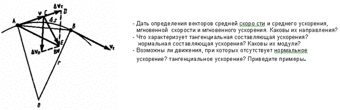 Итак, тангенциальная составляющая ускорения характеризует быстроту изменения скорости по модулю (направлена по касательной к траектории), а нормальная составляющая ускорения — быстроту изменения скорости по направлению (направлена к центру кривизны траектории).