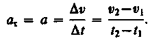 Если начальный момент времени t1 = 0, а начальная скорость v1= v0, то, обозначив t2 = tи v2 = v, получим a=(v—v0)/t, откуда