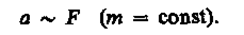 Если рассмотреть действие различных сил на одно и то же тело, то оказывается, что ускорение, приобретаемое телом, всегда прямо пропорционально равнодействующей приложенных сил: