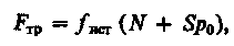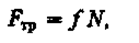 где f— коэффициент трения скольжения, зависящий от свойств соприкасающихся поверхностей.
