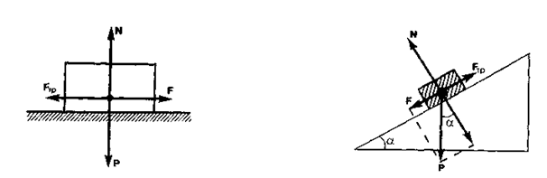 Найдем значение коэффициента трения. Если тело находится на наклонной плоскости с углом наклона a (рис. 12), то оно приходит в движение, только когда тангенциальная составляющая F силы тяжести Р больше силы трения Fтр. Следовательно, в предельном случае (начало скольжения тела) F =Fтрили