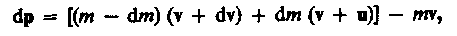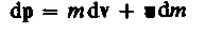 (учли, что dmdv — малый высшего порядка малости по сравнению с остальными). Если на систему действуют внешние силы, то dp=Fdt, поэтому