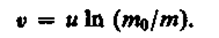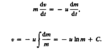 Это соотношение называется формулой Циолковского. Она показывает, что: 1) чем больше конечная масса ракеты т, тем больше должна быть стартовая масса ракеты m0; 2) чем больше скорость истечения и газов, тем больше может быть конечная масса при данной стартовой массе ракеты.