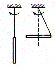 Если, например, палочку подвесить за один конец нити, а другой конец, закрепленный к шпинделю центробежной машины, привести в быстрое вращение, то палочка будет вращаться в горизонтальной плоскости около вертикальной оси, перпендикуляр ной оси палочки и проходящей через ее середину (рис. 31). Это и есть ось свободного вращения (момент инерции при этом положении палочки максимальный). Если теперь палочку, вращающуюся вокруг свободной оси, освободить от внешних связей (аккурат но снять верхний конец нити с крючка шпинделя), то положение оси вращения в пространстве в течение некоторого времени сохраняется. Свойство свободных осей сохранять свое положение в пространстве широко применяется в технике. Наиболее интересны в этом плане гироскопы — массивные однородные тела, вращающиеся с большой угловой скоростью около своей оси симметрии, являющейся свободной осью.