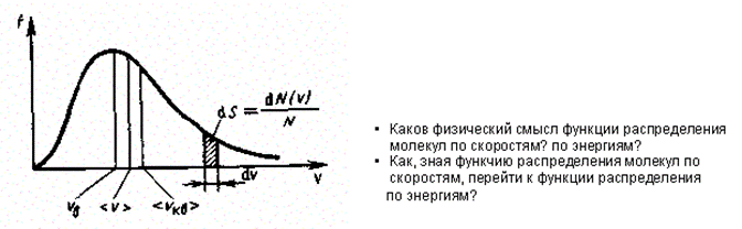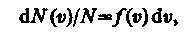 Закон Максвелла описывается некоторой функцией f (v), называемой функцией распределения молекул по скоростям. Бели разбить диапазон скоростей молекул на малые интервалы, равные dv, то на каждый интервал скорости будет приходиться некоторое число молекул dN(v), имеющих скорость, заключенную в этом интервале Функция f (v) определяет относительное число молекул dN (v)/N, скорости которых лежат в интервале от v до v + dv, т. е.