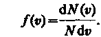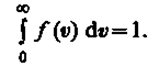 Относительное число молекул dN(v)/N, скорости которых лежат в интервале от v до v + dv, находится как площадь заштрихованной полоски на рис. 65. Площадь, ограниченная кривой распределения и осью абсцисс, равна единице. Это означает, что функция f (v) удовлетворяет условию нормировки