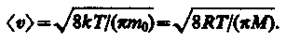 Средняя скорость молекулы <v> (средняя арифметическая скорость) определяется по формуле