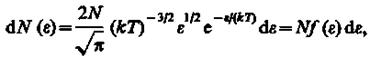 где dN(e) — число молекул, имеющих кинетическую энергию поступательного движения, заключенную в интервале от e до e + de.